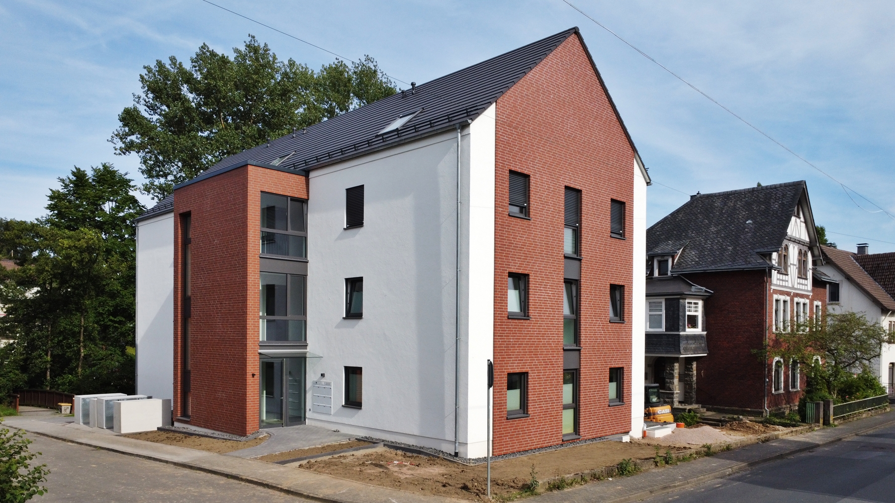 Die monolithische Bauweise setzt klare Strukturen. In Anlehnung an das Nachbargebäude wird die Fassade als architektonisches Zitat mit Klinkeroptik versehen. Nach ca. 1,5 Jahren Bauzeit steht die Wohnanlage vor Fertigstellung. In zentraler Lage von Hilchenbach-Dahlbruch vis-à-vis zum Kulturellen Marktplatz wird eine Antwort auf drignend benötigten Wohnraum geschaffen.